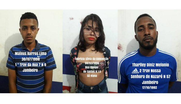 Na noite do último domingo (30), uma ação realizada pela Polícia Militar, através do 1ºBPM, resultou na prisão de três pessoas suspeitas pelo crime de tráfico de drogas no bairro da Vila Embratel, em São Luís. Como resultado da operação foram presos Tharlley Dineiz Melonio, Mateus Barros Lima e Fabricia Silva da Conceição.