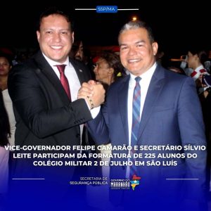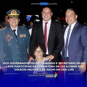VICE-GOVERNADOR FELIPE CAMARÃO E SECRETÁRIO SÍLVIO LEITE PARTICIPAM DA FORMATURA DE 225 ALUNOS DO COLÉGIO MILITAR 2 DE JULHO